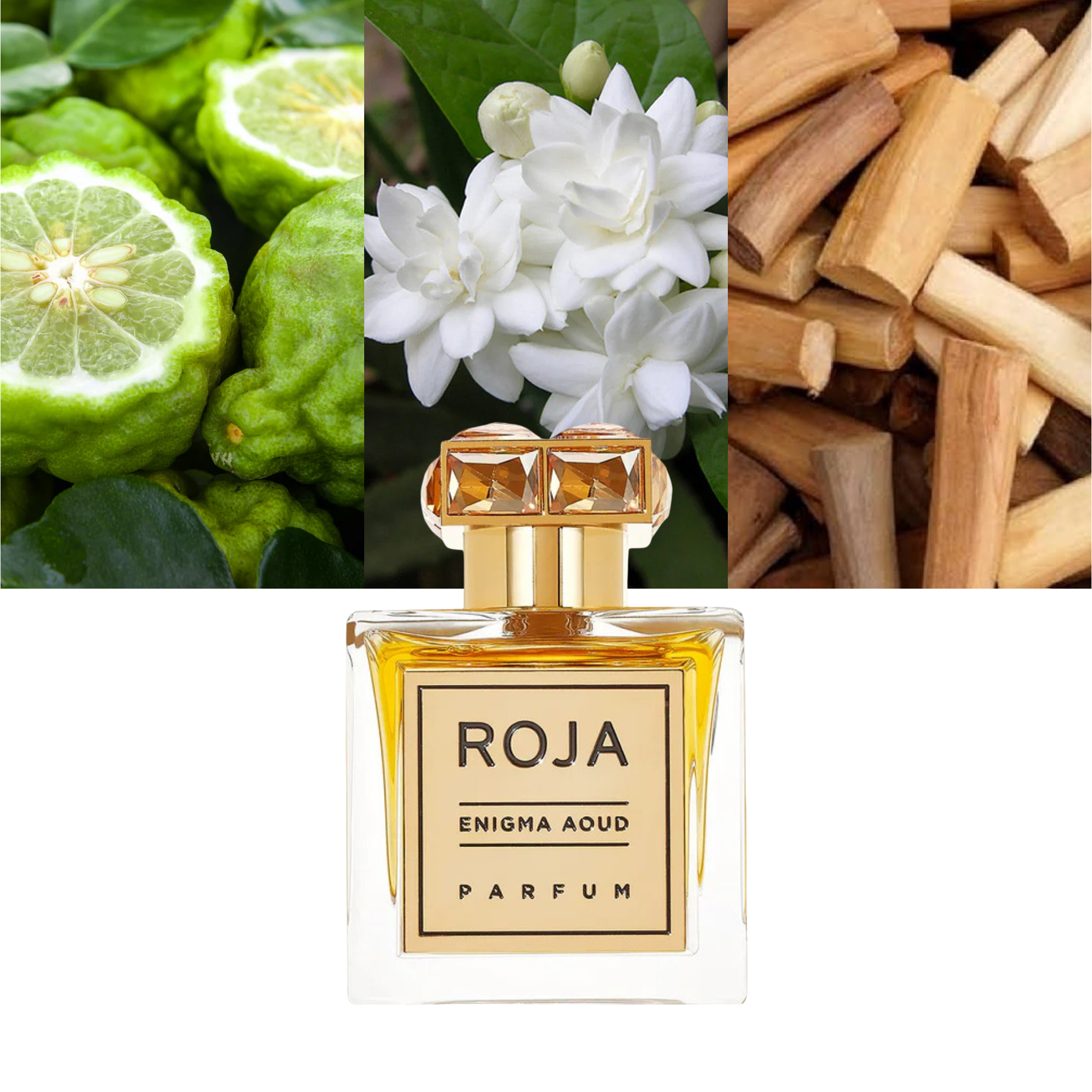 Roja Parfums Enigma Aoud opens with a bright and elegant burst of bergamot and neroli, lending a sparkling freshness that instantly captivates the senses. The fragrance then unfolds into a luscious floral heart of rose, jasmine, and ylang-ylang, evoking femininity, allure, and sensual sophistication. As it settles, the perfume reveals its true depth — a luxurious base of rare aoud, enriched with sandalwood, patchouli, and creamy vanilla, creating a velvety and long-lasting trail that exudes mystery and refinement.